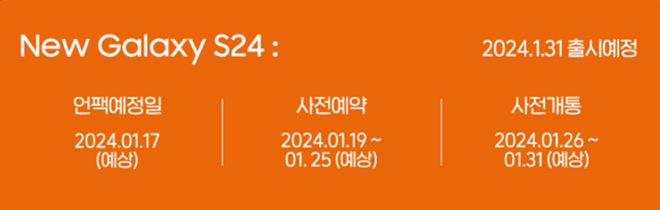갤럭시 s24 사전예약 자급제 언팩 출시일 사전개통 디자인 스펙 가격정보을 알아보자.